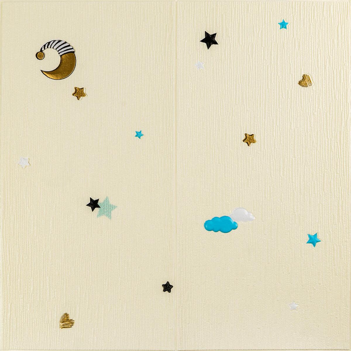 Панель стінова 3D 700х700х4мм Зірки та місяці на бежевому фоні SW-00001971